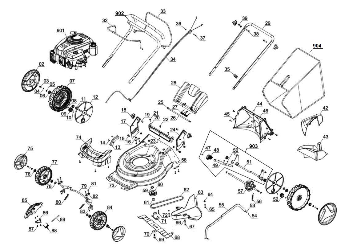 The GC-PM 51/2 S HW petrol lawn mower is a robust, very efficient and indispensable helper for mowing and caring for extensive lawns. Its powerful one-cylinder four-stroke engine generates a high torque for quickly coping with even dense, high growth. A disengageable rear-wheel drive ensures continuous progress and makes it easier to mow large areas. For particularly easy and individual selection of the cutting height there is a central, 6-level cutting height adjustment facility. The starter cable of the GC-PM 51/2 S HW is easy to reach on the ergonomic long handle, which is very user-friendly thanks to a 3-level height adjustment facility and can be folded for storage in minimum space. As a highwheeler, this lawn mower features extra-high rear wheels for easier operation in difficult terrain. All the wheels come with smooth surfaces for less stress on the lawn. The robust housing is made of attractive, powder-coated sheet steel. With a capacity of approx. 70 liters the grass bag has ample room for long work sessions. Thanks to the level indicator you can see at a glance when it is time to empty the bag. In addition the cuttings can be finely shredded by a mulch adapter before they are evenly distributed over the lawn to serve as natural fertilizer. Alternatively, longer grass can be mowed and ejected from the side.