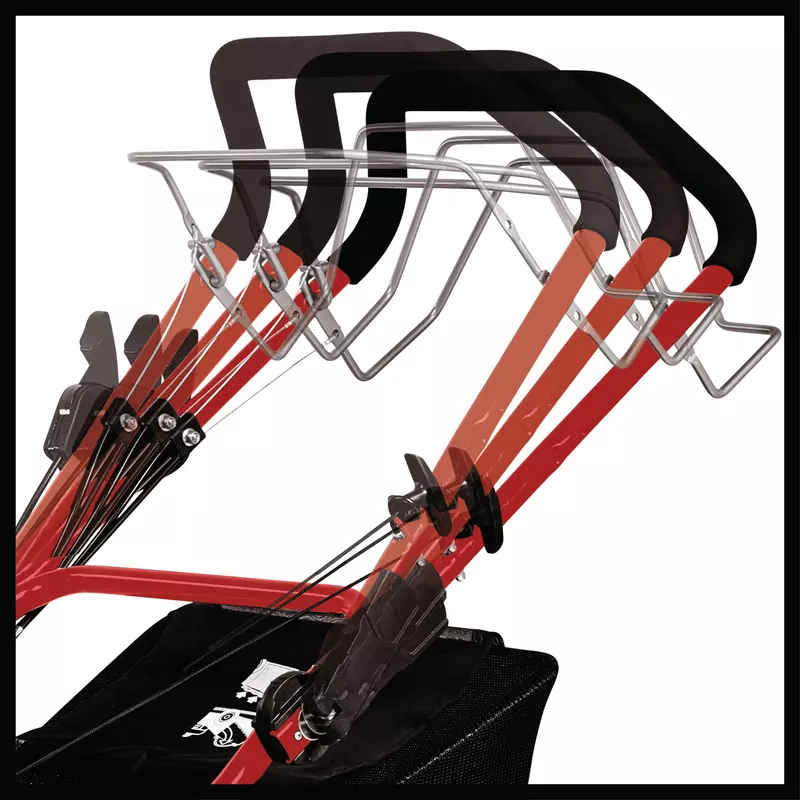 The GC-PM 51 S HW-T petrol lawn mower is a highly maneuverable, rugged and very powerful mower which provides the ambitious hobby gardener with a reliable helper for caring for extensive lawns. Its powerful one-cylinder four-stroke engine delivers high torque for quickly coping with even dense, high growth. A disengageable rear-wheel drive ensures continuous progress and makes it easier to mow large areas. For easy and individual selection of the cutting height this lawn mower has an 8-level central cutting height adjustment facility. The starter cable is easy to reach on the ergonomic long handle, which is very user-friendly thanks to a Softgrip and 3-level height adjustment facility and can also be folded for storage in minimum space. As a highwheeler, this product features extra-high rear wheels for easier operation in difficult terrain. For agile maneuverability this petrol lawn mower has a robust, steerable nose wheel, making it easy to steer precisely around obstacles. For straight areas the front wheel can be easily locked in position from the long handle. The robust housing is made of attractive, powder-coated sheet steel. With a capacity of approx. 70 liters the hard-wearing catch bag has ample room for long work sessions. Thanks to the level indicator you can see at a glance when it is time to empty the box. In addition the cuttings can be finely shredded by a mulch adapter before they are evenly distributed over the lawn to serve as natural fertilizer. Alternatively, longer grass can also be mowed and ejected from the side. This mower is recommended for use on lawns of up to 1,800 m².