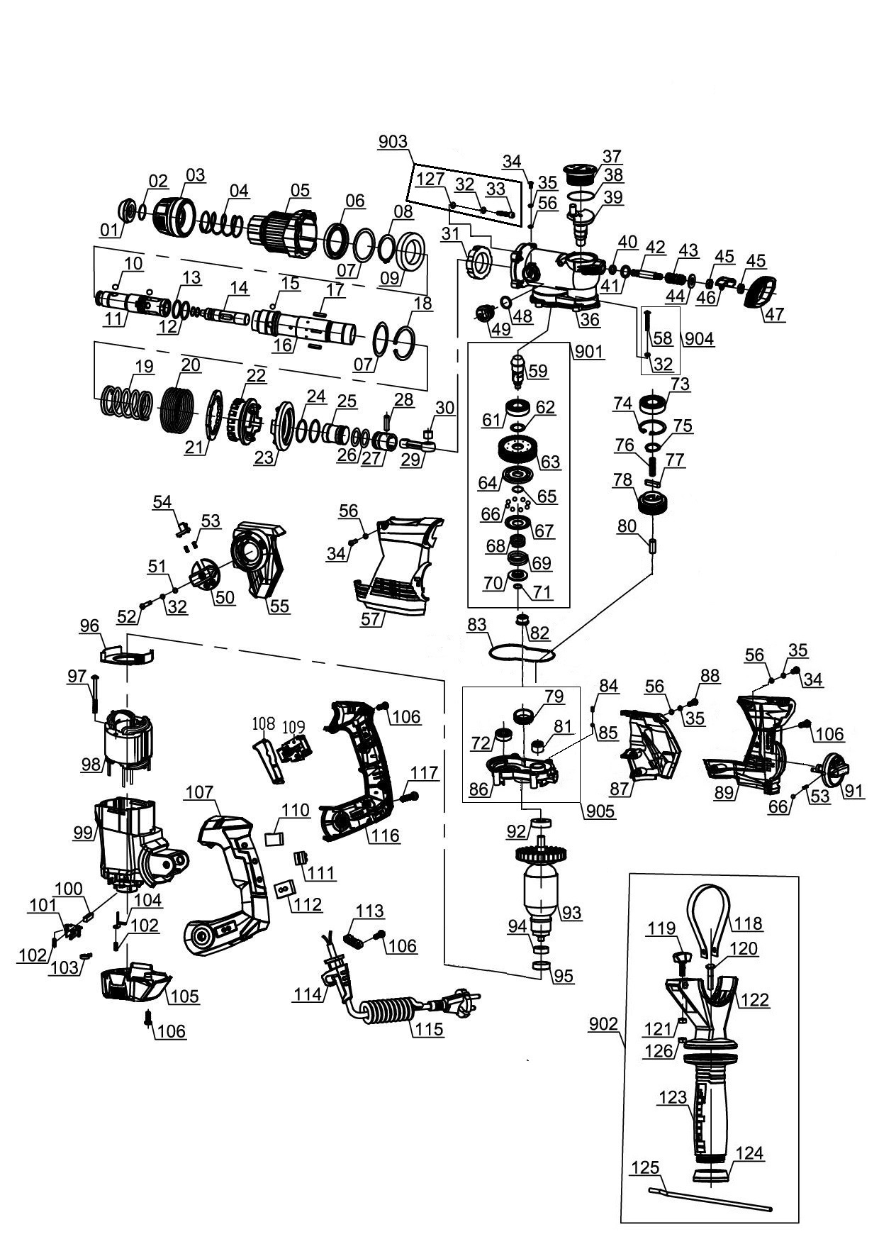The TE-RH 32 E hammer drill with pneumatic hammer action is a high-quality and extremely versatile powerhouse for experts, which is indispensable on challenging building, renovation and chiseling jobs. This all-rounder is equipped with all four functions needed for universal use: hammer drilling, drilling, and chiseling with and without chisel lock. The SDS-Plus chuck enables drill bits and chisels to be changed quickly without tools. The vibration-absorbing grip of the TE-RH 32 E hammer drill signals the optimum contact pressure by "Press-control" – an important feature for low-wear yet high-speed operation. Complete with speed electronics for sensitive and smooth initial drilling. The aluminium gear head of the hammer drill has a robust design. Its ribbed additional handle for enables secure fastening without unwanted twisting. Two LEDs indicate not only when the tool is ready for use but also warn you automatically when worn brushes require servicing. High safety during operation is assured by an overload slip coupling which reacts immediately to any sudden jamming of the bit. An infinitely adjustable drilling depth stop made of metal enables exact, repeat drilling depths. The hammer drill can be put away in the practical transport and storage case with just a twist of the wrist.